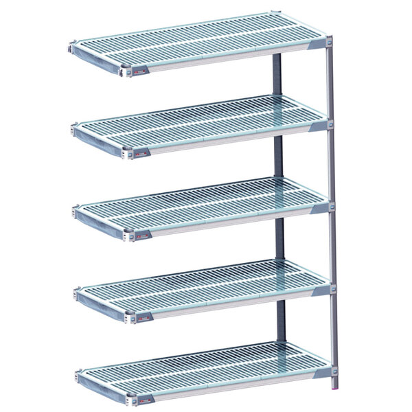 Use this Metro 5AX567GX3 MetroMax i polymer add-on shelving kit to maximize space for a long-lasting storage solution. Providing both durability and versatility, the unit is designed to attach to an adjacent shelving unit and share 2 of its posts. This method adds storage space while minimizing the overall footprint.