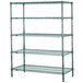 Create a sturdy and spacious shelving system that instantly increases your facility's storage capabilities with the Metro 5N477K3 Super Erecta Metroseal 3 adjustable wire stationary starter shelving unit! This convenient, easy-to-assemble kit includes a total of five 72" x 21" shelves and four 74" SiteSelect posts. Perfect for damp environments such as walk-in freezers and refrigerators, the Metroseal 3 epoxy finish provides antimicrobial protection that resists bacteria, mold, mildew, and fungi that causes odors, stains, and degradation. In addition, an open wire design minimizes dust accumulation and provides increased visibility of the shelf's contents, ensuring the unit is easy to keep clean and organized.
