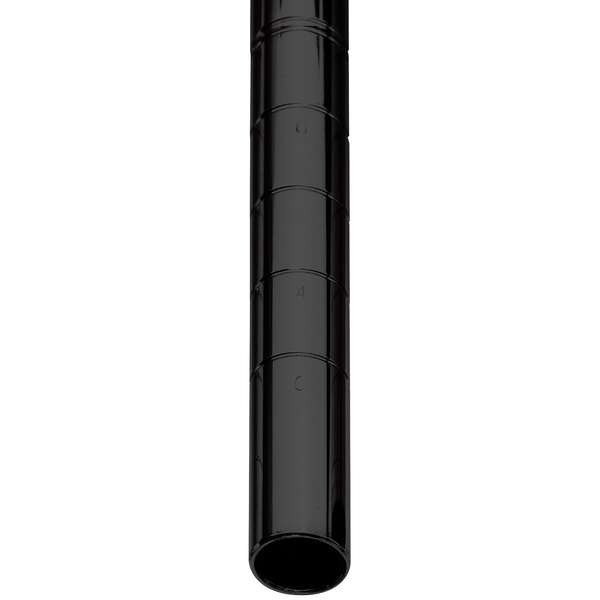 Ideal for almost any transport or movable storage application this Metro 74UPBL mobile Super Erecta SiteSelect 74" black post ships without a leveling bolt assembly so that it can accommodate stem casters! This post has a black epoxy finish for added visual flair in merchandising applications, while crystal clear engravings make installing a full shelving unit easier than ever. It is grooved at 1" increments, numbered at 2" increments, and double grooved every 8" to provide you with a visual guide that makes positioning shelves a breeze.