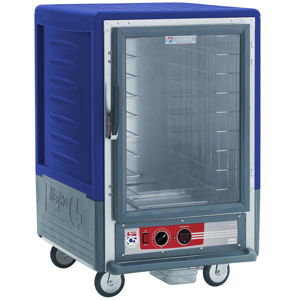 Metro C535-HLFC-4-BU C5 3 Series Insulated Low Wattage Half Size Heated Holding Cabinet with Fixed Wire Slides and Clear Door - Blue