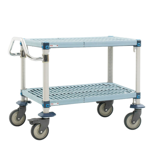 Use this Metro MQUC2436G-25 MetroMax Q utility cart to effortlessly transport items around your restaurant kitchen. It features two corrosion resistant shelves and a type 304 stainless steel handle. Each shelf measures 24" x 36" and has a removable mat for easy cleaning. The open grid shelves provide great air circulation and easy visibility of items on your shelves.
