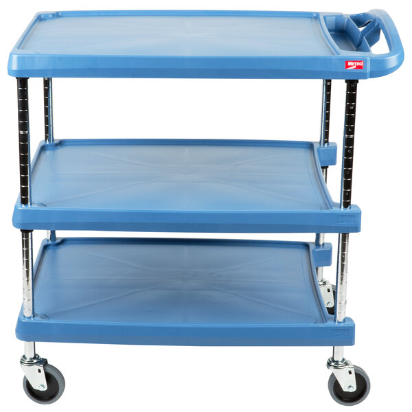 Absolutely love this cart. I have bought at least 3 others since I bought this cart. They may appear a little weak compared to some others but they have worked amazing for our school kitchens. The four wheels that can swivel in any direction is extremely helpful for us.