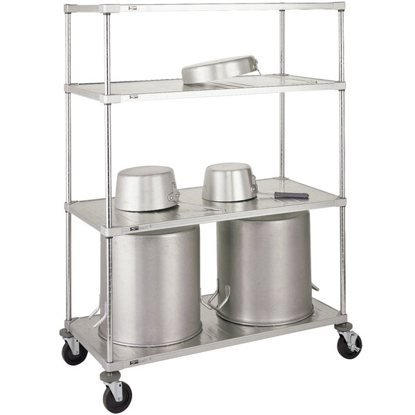 Add versatility and storage space to your commercial kitchen with the Metro PR48ES mobile solid embossed pot and pan rack! This mobile pot rack utilizes Metro's Super Erecta shelving to let you adjust your rack in 1" increments and modify it with other accessories so that it's perfect for your business.