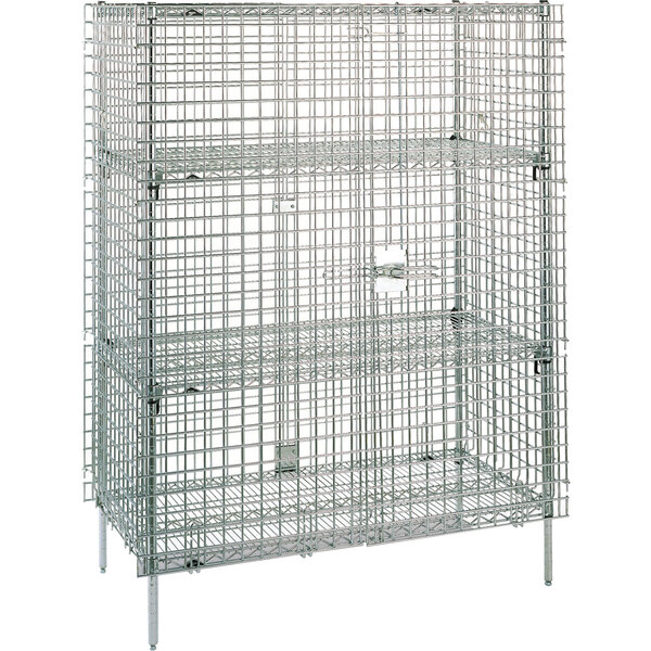This durable Metro SEC55CQ QwikSLOT stationary security unit is perfect for keeping all of your valuable and sensitive items safe from loss or theft. The QwikSLOT feature of this unit makes the shelves easy to add, remove, and reposition in seconds. Its heavy-gauge, open wire construction features two full doors to keep items safely enclosed in the unit while still visible to easily check inventory. Each post has a leveling foot that can be adjusted to keep your unit level on uneven surfaces. The two intermediate shelves are an optional feature of this unit and must be purchased separately.