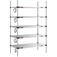 Metro Super Erecta 14" x 30" Stainless Steel 4-Shelf Heated Stainless Steel Takeout Station with 63" Chrome Posts