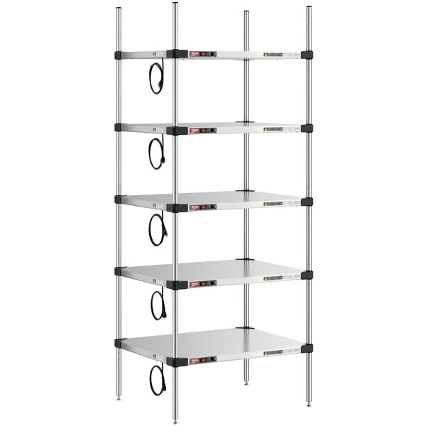 Metro Super Erecta 24" x 30" Stainless Steel 5-Shelf Heated Stainless Steel Takeout Station with 74" Chrome Posts