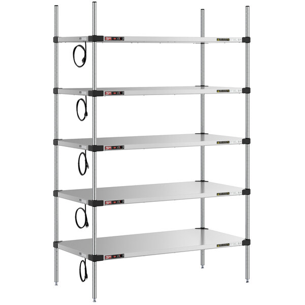 Metro Super Erecta 24" x 48" Stainless Steel 5-Shelf Heated Stainless Steel Takeout Station with 74" Chrome Posts