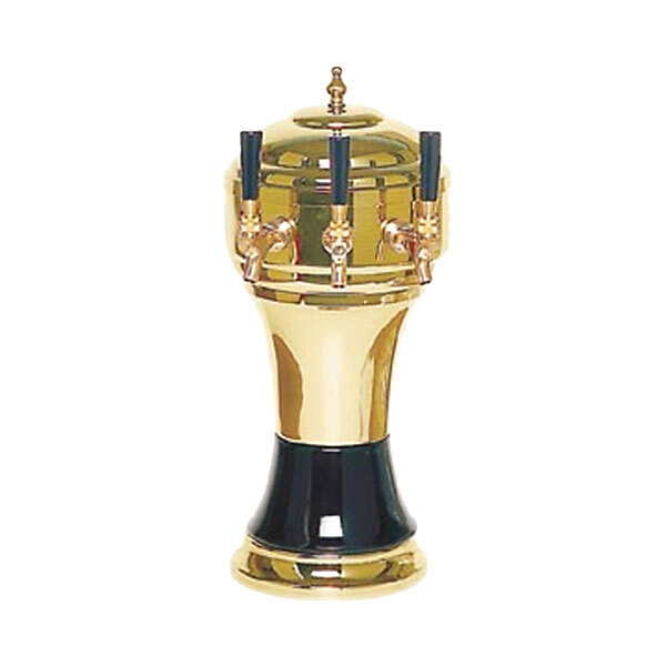 This Micro Matic CT902-3BRKR brass black Kool-Rite 3 tap tower adds a unique aesthetic appeal to your operation while boosting the efficiency of your bar, pub, or restaurant with a reliable design that's sure to save you time and money! With an elegant combination of sculpted polished brass and a rich black ceramic trim toward the bottom, this Zeus tower's sleek design exudes power and nobility straight out of Greek mythology! This unit features 3 taps that allow you to provide eager guests with a variety of brews without sacrificing all of the space required by a full line of taps. The tower's glycol-cooled configuration makes it great for applications where the point of dispensing is up to 500' from the keg, ensuring that your beer will dispense at the perfect serving temperature from the first pour to the last!