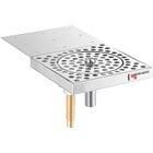 The glass rinser is easy to use; simply invert the glass and push down on the sprayer! It includes a 3 1/2" x 1/2" threaded brass drain and a 1/2" BSP water connection and mounts on the underside of your bar or counter with the included mounting flange. For proper functioning, this unit requires an in-line water pressure regulator (sold separately) set at 15 PSI from the street water supply. This rinser is sure to promote good hygiene and help your staff serve perfect pints of beer with every pour.