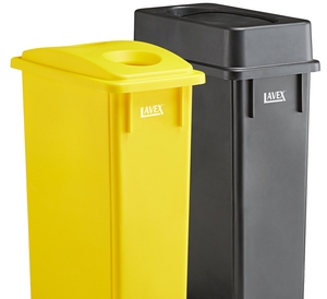 - Item #: 475wh23ybbmkLavex 46 Gallon 2-Stream Slim Rectangular Mobile Recycle Station with Black Drop Shot and Yellow Bottle / Can Lids