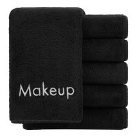 As guests will resort to using any available towel to remove makeup without consideration for the longevity of the towel, having this black makeup towel readily available will help to extend the life of your white towel supply. Your laundry operators will clean them separately from whites, eliminating the staining of white that occurs simply by washing them alongside other towels used for makeup removal. This makeup towel features premium embroidered text that reads "Makeup," making its purpose clear to your guests!