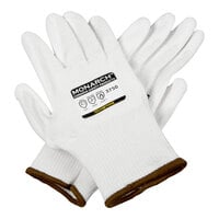 Protect your hands with this Monarch Dots gray engineered fiber cut resistant pair of gloves with two-sided black nitrile dotted coating. The 13 gauge fabric offers a high level of cut resistance with EN388 CE protection of 454X and ANSI level A3 cut protection, meaning that more than 1000 grams of weight is required to cut through the material. This ensures worry-free tasks for your employees as they can be sure the gloves will remain durable, comfortable, and fully capable of guarding against accidental cuts, even in high volume, fast-paced settings. Perfect for warehouses, construction sites, and handy-man jobs alike, this pair of gloves is sure to boost both safety and productivity.