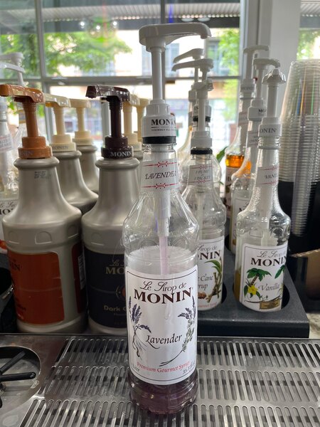Containing quality ingredients, Monin 1 liter premium lavender flavoring syrup is a quick and easy way to add new flavors to a variety of recipes! Add a splash of this lavender syrup to your most popular beverages and it's sure to please your guests. The semi-sweet, floral taste and purple color of this flavoring syrup will enhance the profile of your mixed or blended drinks without overpowering them or being too sweet. Plus, it's produced with pure cane sugar and no artificial flavors, making it an all-natural syrup with a balanced blend of flavor and aroma that will instantly upgrade your lattes, lemonades, sodas, teas, and cocktails.