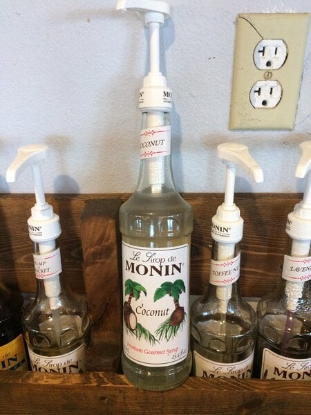 Monin has been our favorite brand to work with for our specialty coffees and teas they are perfect for mixing with our lattes or just sweetening regular coffee. They don’t taste artificial and are all natural. Coconut is delicious!