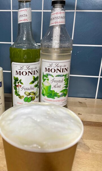 We love using Monin syrups at our busy little coffee shop and roastery. We often rotate syrups, but we've kept the Monin Pistachio syrup in stock for the two years since we've been open. One of our most popular drinks, the Candied Pistachio Latte features this syrup.
