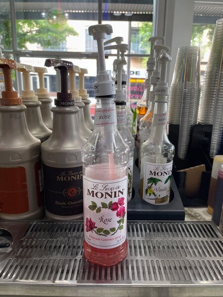 Bring sweet, floral flavor to your beverages with this Monin 1 liter premium rose flavoring syrup! Featuring a well-balanced herbal and floral rose flavor and aroma, this syrup provides a quick and easy way to add exciting new flavor and a pink hue to a variety of your handcrafted cocktails, wine spritzers, lattes, iced teas, and lemonades. You can even use it in a variety of baked goods and frostings! Made with pure cane sugar and no artificial ingredients, this clean label syrup will enhance the flavor profile of your mixed or blended drinks without overpowering them or being too sweet.