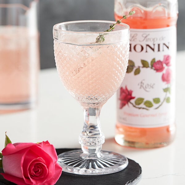 Bring sweet, floral flavor to your beverages with this Monin 750 mL premium rose flavoring syrup!
