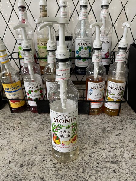 Bring sweet, fruity flavor to your beverages with this Monin premium white peach syrup! Made with pure cane sugar and no artificial ingredients, this clean label syrup delivers a mild, ripe white peach taste that will enhance the flavor profile of your mixed or blended drinks without overpowering them or being too sweet. It provides a quick and easy way to add exciting new flavor to a variety of your handcrafted iced teas, lemonades, smoothies, and cocktails.