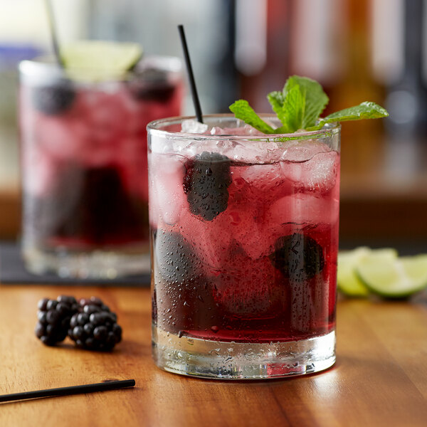 Featuring a sweet, juicy blackberry flavor, this syrup provides a quick and easy way to add exciting new flavor to a variety of your handcrafted cocktails, sodas, iced teas, and lemonades. Made with pure cane sugar and no artificial ingredients, this all natural syrup will enhance the flavor profile of your mixed or blended drinks without overpowering them or being too sweet. You can even use this syrup to create deliciously sweet popsicles, sorbets, or a variety of sauces! Packaged in a shatterproof plastic bottle, this flavoring syrup is an excellent addition to any restaurant, bar, coffee shop, or cafe. It boasts a sleek appearance for an attractive shelf presence and can easily be paired with a compatible pump for quick, efficient service during peak serving hours.
