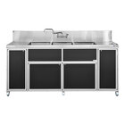 Monsam PSE-2003LA-GRAY Gray Three Deep Basin Portable Commercial Sink with 2 Drainboards