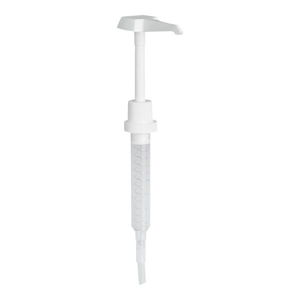 The pump has markings for .25 oz., .33 oz., 0.50 oz., .67 oz., and 1 oz. for convenient, uniform dispensing that helps your staff to control how much product they use. It ensures consistent product portioning, saves costs, and is a quick, easy way to prepare drinks.