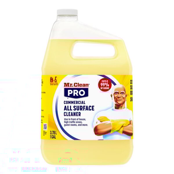 Tackle tough messes with this Mr. Clean Professional commercial all-surface cleaner. This all-surface cleaner is designed with a powerful formula that traps, lifts, and removes commercial grime left behind on sinks, counters, walls, and glass in front-of-house, high-traffic areas. This product is sold in convenient, ready-to-use 1-gallon jugs with 3 jugs per case. Each jug refills up to (4) 32 fl. oz. bottles (sold separately).