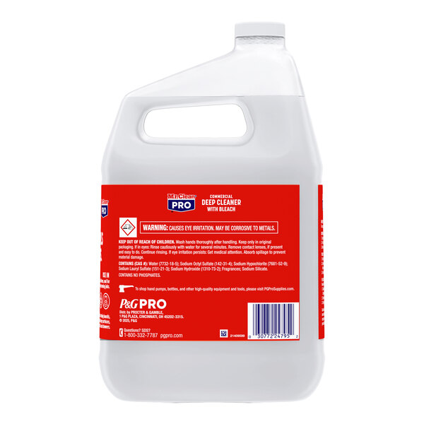 Tackle tough messes with this Mr. Clean Professional commercial deep cleaner with bleach. This all-surface cleaner is designed with a powerful formula combining bleach with 3 deep-cleaning ingredients that trap, lift, and remove tough commercial soils, odors, mold, and stains left behind on food prep surfaces, sinks, toilets, tubs, and showers in high-traffic areas. This product is sold in convenient, ready-to-use 1-gallon jugs with 3 jugs per case. Each jug refills up to (4) 32 fl. oz. bottles (sold separately).