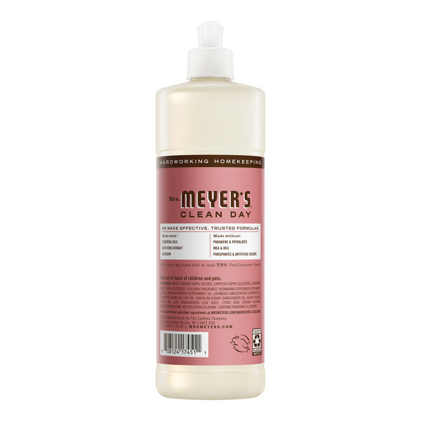Easily get rid of tough-to-clean grease with this Mrs. Meyer's Clean Day 370043 16 oz. rosemary scented dish soap! This rosemary scented dish soap is specifically designed for you to be able to hand wash your pots and pans. Its concentrated and formula is meant to get at grease and other messes that are hard to clean, while being environmentally conscious and supporting a cruelty-free product that was never tested on animals. It is made of plant-derived materials so that it can rinse cleanly for spot-free dishes and glassware.