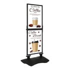 Create an eye-catching display with this MT Displays WindPro Slim 2 Tier 22" x 28" black sign board with black water base! This unique sign board features a 2- tiered frame design with heavy-duty coil springs and a water base that provide stability in outdoor conditions. The 2 frames each hold (2) 22" x 28" signs for the ability to hold a total of 4 signs, making it ideal for showcasing your promotions and events. The included clear plastic covers also keep your signs protected from the elements, ensuring that your advertising remains intact. Crafted from HDPE plastic, the black water base keeps this sign board firmly in place when filled with water, making it a wind-resistant solution for outdoor advertising at markets, grocery stores, hotels, and retail centers.