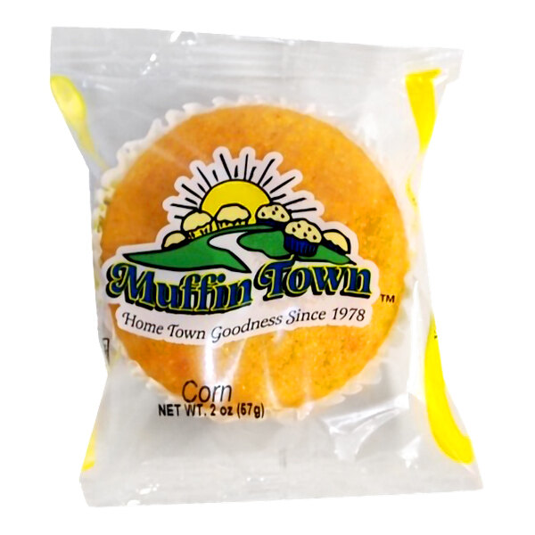 Featuring hearty cornmeal, this Muffin Town corn muffin is a flavor-packed addition to any snack stand! Sell it at your convenience store or supermarket, quaint coffee shop, or corner cafe. It's a quick and easy, "on the go" option for busy patrons in need of a filling, yet satisfying snack.