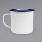 Create a vintage-inspired, stylish setting with this Crow Canyon Home V112BLA Vintage 16 oz. white enamelware mug with black rolled rim! At home in both casual and upscale dining rooms, this mug serves hot beverages like coffee, tea, and hot cocoa in style. Each piece in this enamelware line is meticulously handmade following processes that have been around for centuries. Starting with a steel base, each item is hand-dipped in porcelain to build a lasting base cover and top-coat. As a result, the Vintage enamelware line offers items that are both lightweight and remarkably durable for you long-lasting enjoyment. Perfect for use both indoors and outdoors, enamelware is a great alternative to china or disposable items. In addition, this enamelware provides versatility, and can even be used over the grill, stovetop, or campfire.