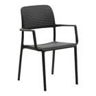As part of the Bora collection, this one-piece chair features a rounded profile and a seamless tubular frame. Crafted for comfort, it sports ergonomic arm rests and a perforated design that allows better air flow. The light weight, stackable construction of this chair allows for easy transportation and storage while its non-slip feet keep it in place. This chair seamlessly combines style and functionality to create an inviting outdoor setting for your guests. Whether you're setting up a cafe patio or a bustling restaurant terrace, this chair is the perfect choice for adding a chic, modern touch to your outdoor dining space.