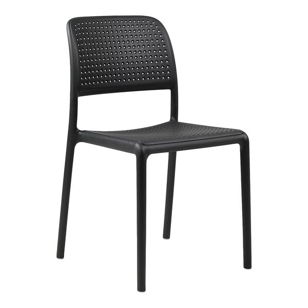 Enhance your outdoor dining experience with this Nardi Bora Bistrot antracite resin stackable outdoor chair. This durable chair is crafted with recyclable fiberglass polypropylene resin with a matte finish, and it is uniformly colored with non-toxic pigments. Built to withstand the elements, it is also treated with anti-UV agents that protect the color from fading with sun exposure, providing long-lasting use. Its weather-resistant design ensures that it will maintain its sleek appearance and attractive antracite black color in outdoor conditions, making it perfect for use in outdoor dining areas, patios, and bars.