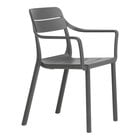 Enhance your outdoor dining experience with this Nardi Cassia antracite resin stackable outdoor arm chair. This durable chair is crafted with recyclable fiberglass polypropylene resin with a matte finish, and it is uniformly colored with non-toxic pigments. Built to withstand the elements, it is also treated with anti-UV agents that protect the color from fading with sun exposure, providing long-lasting use. Its weather-resistant design ensures that it will maintain its sleek appearance in outdoor conditions, making it perfect for use in outdoor dining areas, patios, and bars.