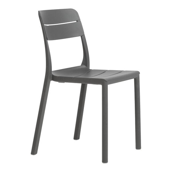 As part of the Cassia Bistrot collection, this chair features stylized horizontal slats and an attractive basalto gray color. Its one-piece construction is light weight and stackable, allowing for easy transportation and storage. Additionally, it has non-slip feet that keep the chair in place. This chair seamlessly combines style and functionality to create an inviting outdoor setting for your guests. Whether you're setting up a cafe patio or a bustling restaurant terrace, this chair is the perfect choice for adding a simple, modern touch to your outdoor dining space.