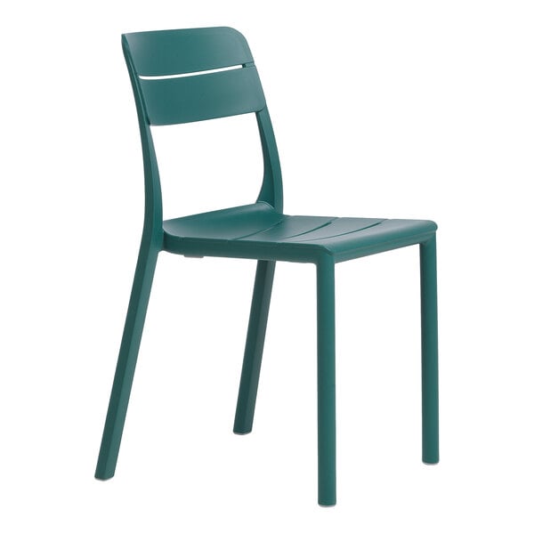 As part of the Cassia Bistrot collection, this chair features stylized horizontal slats and an attractive maya green color. Its one-piece construction is light weight and stackable, allowing for easy transportation and storage. Additionally, it has non-slip feet that keep the chair in place. This chair seamlessly combines style and functionality to create an inviting outdoor setting for your guests. Whether you're setting up a cafe patio or a bustling restaurant terrace, this chair is the perfect choice for adding a simple, modern touch to your outdoor dining space.