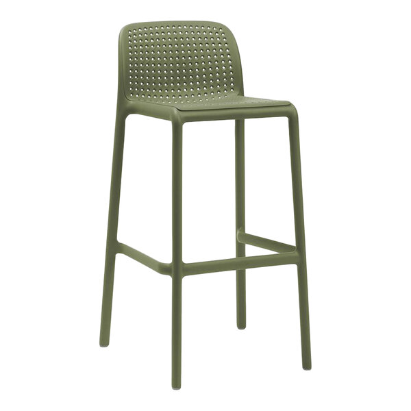 Enhance your outdoor dining experience with this Nardi Lido agave resin stackable outdoor barstool. This durable barstool is crafted with recyclable fiberglass polypropylene resin with a matte finish, and it is uniformly colored with non-toxic pigments. Built to withstand the elements, it is also treated with anti-UV agents that protect the color from fading with sun exposure, providing long-lasting use. Its weather-resistant design ensures that it will maintain its sleek appearance and attractive agave green color in outdoor conditions, making it perfect for use in outdoor dining areas, patios, and bars.