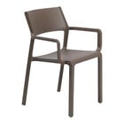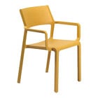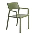 Enhance your outdoor dining experience with this Nardi Trill bianco resin stackable arm chair. This durable chair is crafted with recyclable fiberglass polypropylene resin with a matte finish, and it is uniformly colored with non-toxic pigments. Built to withstand the elements, it is also treated with anti-UV agents that protect the color from fading with sun exposure, providing long-lasting use. Its weatherproof, antistatic design ensures that it will maintain its sleek appearance in outdoor conditions, making it perfect for use in outdoor dining areas, patios, and bars. Plus, it is easy to clean with soap and water.