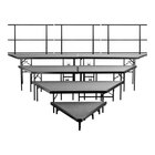 Elevate your performance with this National Public Seating 4-level seated riser pie set. This riser set boasts a durable construction with a 3/4" solid plywood core and a 16 gauge steel frame, ensuring long-lasting use. It features 4 separate levels, and the reliable structure can accommodate over 200 lb. per square foot, providing unmatched support and versatility for a variety of applications. The legs are made from 14 gauge steel tubing, and the legs have plastic glides that help protect delicate floors from scratches. The frame features a black powder-coated finish, and it has a black carpet to enhance your presentation.