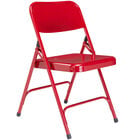 For quick, convenient, and comfortable seating at the drop of a hat, look no further than this National Public Seating 201 beige premium metal folding chair. This chair boasts a 18 gauge round tubular steel frame along with a 2 1/2" frame strengthener for exceptional durability. Its electromagnetically welded seat back is specially shaped for added support, while two double-riveted cross braces and a pair of double hinges on each side ensure extra stability.