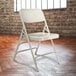 For quick, convenient, and comfortable seating at the drop of a hat, look no further than this National Public Seating 302 gray premium metal triple-brace folding chair. This chair boasts a 18 gauge round tubular steel frame for exceptional durability. Its electromagnetically welded seat back is contoured for added support, while three double-riveted cross braces and a pair of double hinges on each side ensure extra stability.