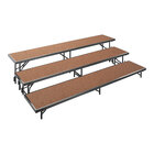 For added convenience, this unit is equipped with drop-in couplings that act as built-in ganging devices. These allow you to connect additional stages of the same or different heights (sold separately), so you can create a larger stage surface to best suit your establishment's needs. For easy portability, the legs have spring-loaded locking mechanisms that allow them to fold up easily. A great addition to auditoriums, schools, conference centers, and other venues, this choral riser is sure to take any performance to the next level! This unit ships fully assembled.
