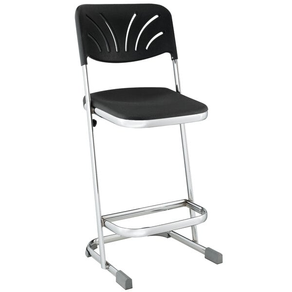 Add some modern flair to your art studio, workplace, science lab, and more with this National Public Seating 6624B Elephant Z-Stool with backrest! Constructed of 12-gauge, chrome-plated tubular steel, this chair's design is both aesthetically pleasing and extremely durable. Its fan-back backrest offers support, while its ergonomic blow molded seat provides maximum comfort.
