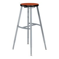 This durable National Public Seating Titan lab stool is a great choice for seating in laboratories, art studios, and science classrooms! Its classic gray frame design suits institutional settings, providing a sleek and modern seating option. With a 1000 lb. capacity, it is an optimal choice for any user. The sturdy, 14" diameter MDF seat features a high-pressure wild cherry laminate surface with textured Protect Edge molding and is 1 3/16" thick for maximum support.