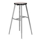 This durable National Public Seating Titan lab stool is a great choice for seating in laboratories, art studios, and science classrooms! Its classic gray frame design suits institutional settings, providing a sleek and modern seating option. With a 1000 lb. capacity, it is an optimal choice for any user. The sturdy, 14" diameter particleboard seat features a high-pressure Montana walnut laminate surface with vinyl T-molding and is 1 3/16" thick for maximum support.