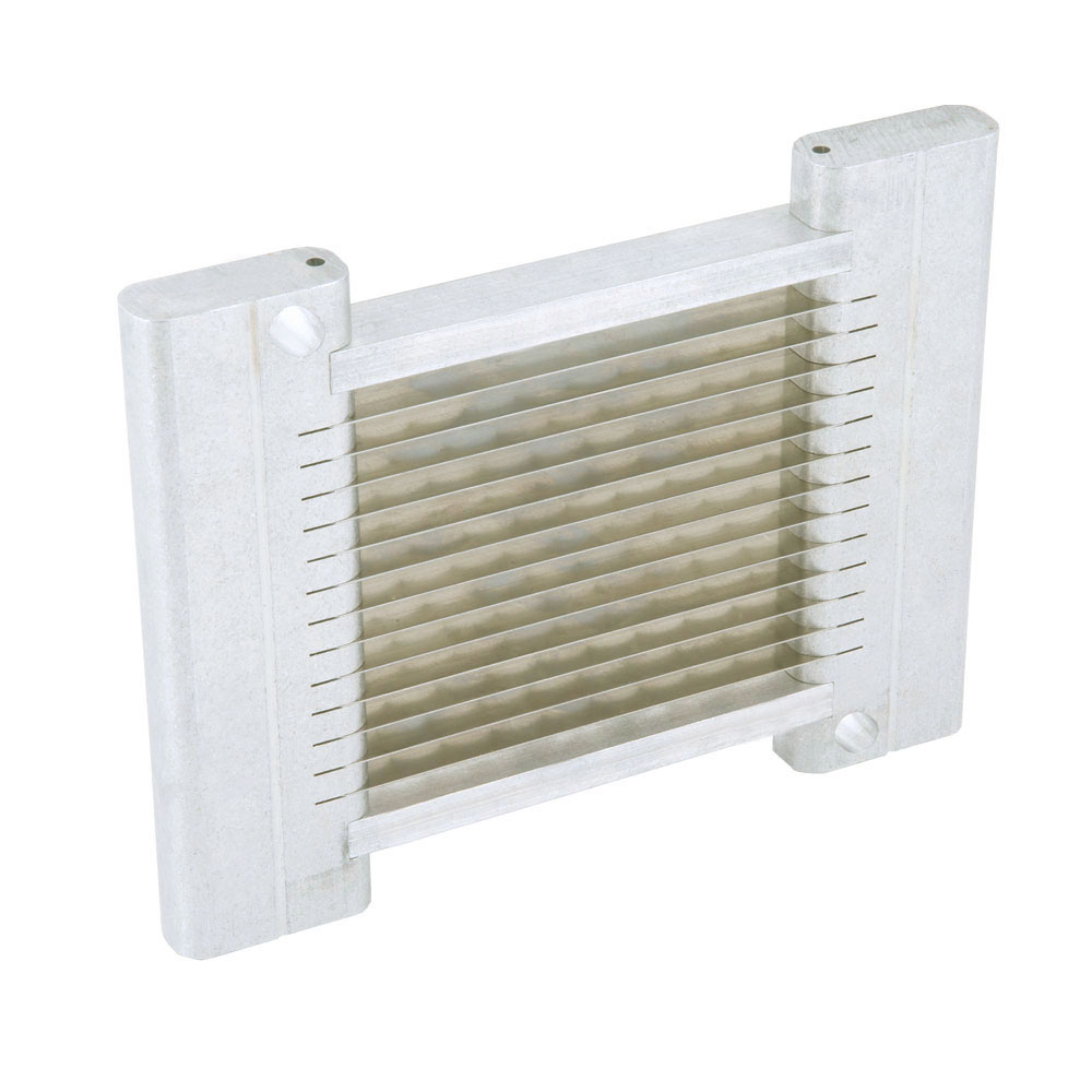 This Nemco 57424-5 1/4" slice assembly allows you to easily replace the worn or damaged component on your 57500-5 slicer, or can even be combined with a compatible push block (sold separately) to change the cut size on any other Easy Chopper III unit! The assembly is color-coded red corners so you don't have to worry about mismatching components, while the stainless steel blades stay incredibly sharp and taut for a clean, one-stroke cut every time.