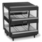 Safely and stylishly display pizzas, burgers, precooked meals, and more with the Nemco 6480-24S stainless steel 24" slanted double shelf merchandiser! This black merchandiser utilizes 1160 watts of heating power to hold food at safe, ready-to-serve temperatures so your customers can conveniently grab something to eat on the go. It boasts slanted shelves that provide a wide, full view of your products for maximum exposure and tantalizing appeal. Independent heat and light controls on each shelf let the operator specify display and holding conditions for different foods, giving you the precision and versatility needed for excellent flavor and marketing potential.