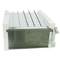 Boasting a rugged stainless steel and aluminum construction with a removable drip pan, this hot dog roller grill is built with easy cleaning and long-lasting service in mind. Its sealed motor with ball bearings as well as its grease barrier prevent grease from leaking out of the motor for sanitary, efficient operation. And, because of its simple design, this grill doesn't need to be contained under a ventilation system when in use.