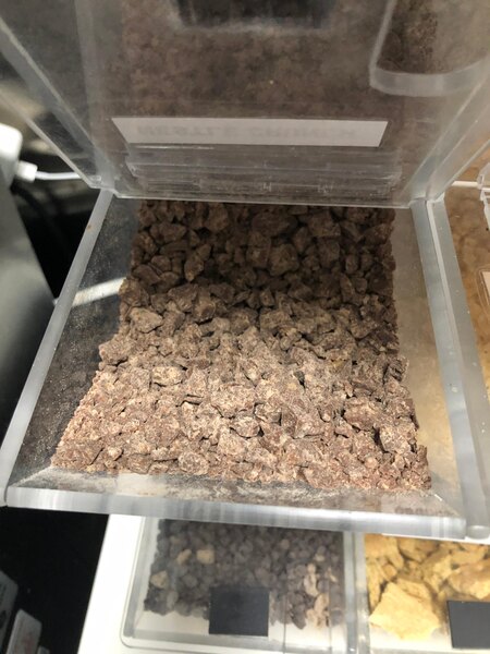 Great topping for our frozen yogurt bar. It's chopped into nice size pieces and not so small that it just becomes unusable when breaks down. Offered in different packaging sizes also.