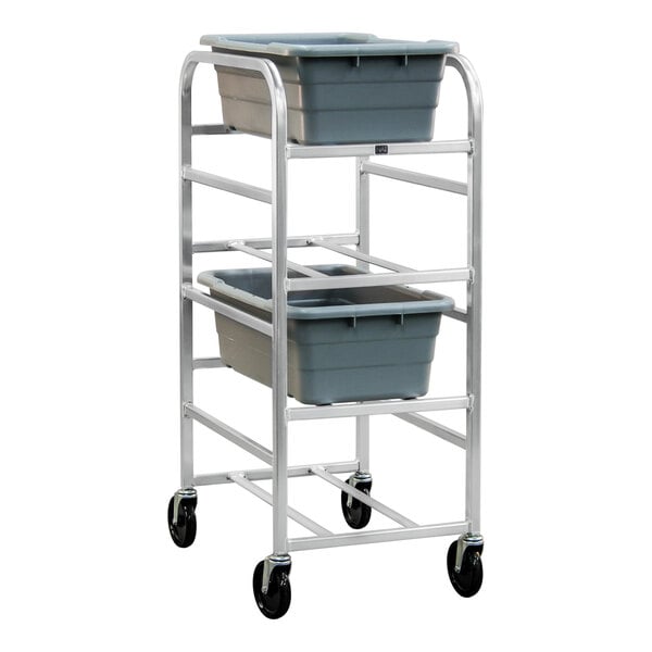 This unit boasts a welded, primary-grade aluminum construction that resists rust and corrosion. It is suitable for industrial and commercial use including damp environments like walk-in refrigeration. Its framework is constructed of 1" wall tubing, and its uprights are reinforced to help prevent breakage from the casters. The shelves are made of oval tubing, making it easy to load and unload product. Boost efficiency in your commercial kitchen with this convenient lug dolly!